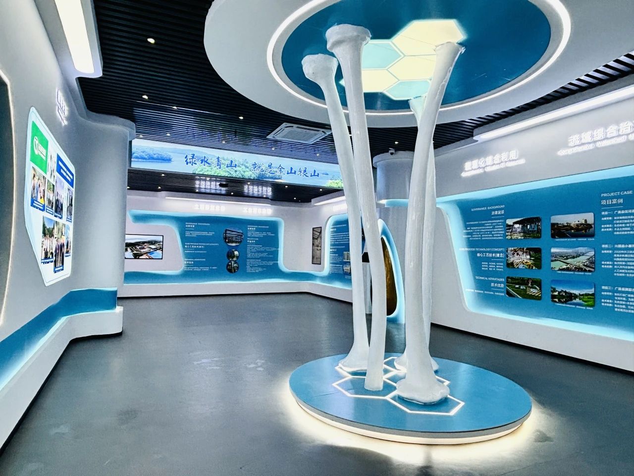 總部一樓的數(shù)字化展廳,是科技與環(huán)保理念碰撞出的璀璨火花。展廳內(nèi),通過高清大屏、走在虛擬與現(xiàn)實(shí)的前沿,我們精心打造了一個(gè)充滿科技感的環(huán)保世界。在這里,來(lái)訪者可以身臨其境地體驗(yàn)環(huán)保科技的魅力,深入了解我們?cè)诰G色科技領(lǐng)域的創(chuàng)新成果與卓越貢獻(xiàn)。